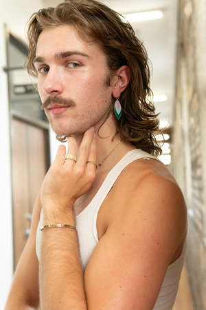 These earrings are made of delicate oval discs giving the impression of beautiful fall leaves. Lightweight and medium-sized, they are suitable for all-day wear. Made from brass-plated recycled metal. Nickel-free. Measures 2.5" long.
