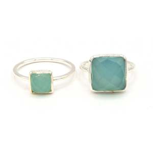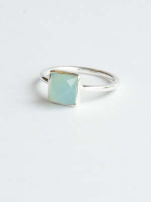A beautiful piece, this ring has a simple oversized square cut aqua stone that makes it an eye-catching accessory. Matched with other rings or worn simply on its own, this sterling silver ring is an instant wardrobe staple. This sterling silver and aqua chalcedony semi-precious stone is handmade by women in India. Portions of this product are made using recycled materials. Nickel-free.