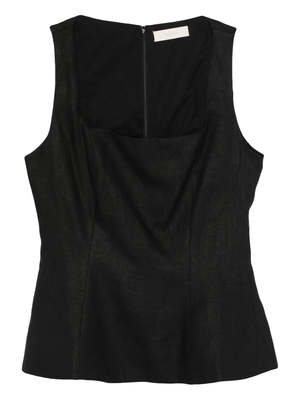 An elevated everyday top, the Mina is designed from a signature 100% European Flax linen in a classic black. With a square neckline and wide shoulder straps, it is fitted through the bodice before cinching in slightly at the waist and flaring into a peplum hem that crops around the hips. Softly tailored but with an ease of wear, style it with the matching Valeria Capri for timeless set dressing. This style is true to size. There is no elastic woven into the fabric so it does not offer any additional stretch. Product Details Designer ID: FF3825-BLK Color: Black Composition: Outer: 100% Linen; Lining: 100% Cotton Imported