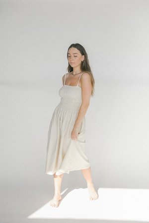 Details Faithfull the Brand embodies a youthful and uncomplicated collectsion of pieces with a nostalgic nod to vintage wardrobes of summer's past. The team combines Scandinavian simplicity with the Australian laid-back spirit and the island life ambiance. Each piece is designed with the modern traveler in mind. They are versatile and simple - allowing confidence and style to be expressed effortlessly. Description Features a ruched bodice, simple over-the-shoulder straps, and a floating silhouette. Crafted in a terry toweling fabrication. Content + Care - 100% Cotton - Hand-wash in cold water or on delicate cycle - Hang to dry