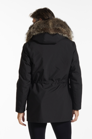 Your ultimate weather-proof coat that combines style and functionality. Featuring: - 30 inches in length - Hood with removable trim in coyote fur - Removable body lining in rabbit fur and padded sleeves and body filled with high-quality goose down - Front double-zipper closure plus button tab - Two waist pockets - Two lower pockets with press-stud flaps - Drawstring at the waist Specialty cleaning only Lining: Rabbit Fur Hood Trim: Coyote Fur Filling: 95% Goose Down Shell: 100% Polyamide