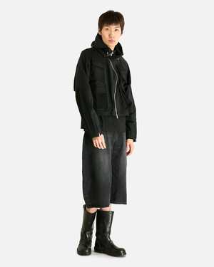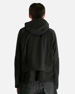 The Aire Curved Zip Game Jacket is crafted from a 60% wool, 40% polyester blend. It features a hood with adjustable drawstring detail, a curved two-way front zip closure, mesh flap pockets on the front, mesh paneling on the sleeves and back, and zippered gussets on the cuffs. Fit & Sizing Regular fit, cropped. Model is 6'2" and wears size medium. Details Product SKU: FFFPSFW2510. Made in Korea.