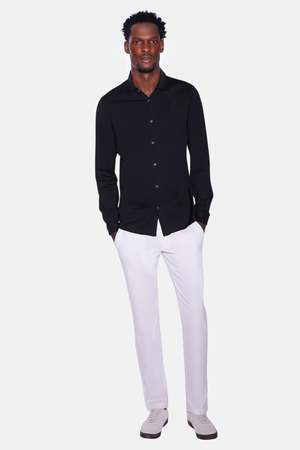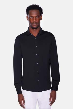 A polished take on everyday comfort. This long sleeve shirt from Filippo De Laurentiis is made from soft cotton jersey with a tailored fit and clean finish. - Color: Black - Spread collar - Button closure - Made in Italy - Style #: CAMLBAS - MPN: CAMLBAS - SKU: FDLMSP25-04