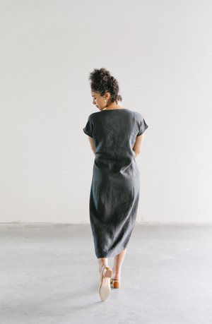 DESCRIPTION One of Filosofia's best selling dresses now in linen! Featuring a universally wearable shape and two hidden pockets the Brooke dress complements any wardrobe. This dress is machine washable making it easy to wear day after day. DETAILS - 100% Linen - Wash cold hang to dry - Model is 5'4" wearing XS