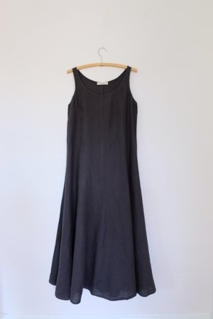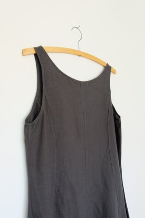 Tank dress with wide full skirt. 100% pre-washed linen. Machine wash and tumble dry low. Made in USA.