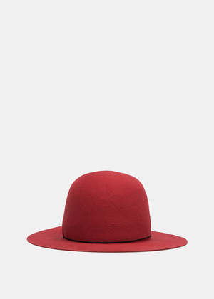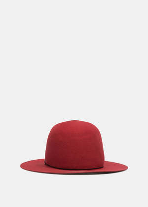 Raspberry domed hat in hare felt. Tall crown and mid brim. Approximate measurements: Size S: 31 cm outer diameter, 52 cm inner band circumference. Size M: 31 cm outer diameter, 53 cm inner band circumference. 93% Hare Felt, 3% Polyamide, 2% Cotton, 2% Viscose. Made in Italy.