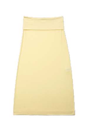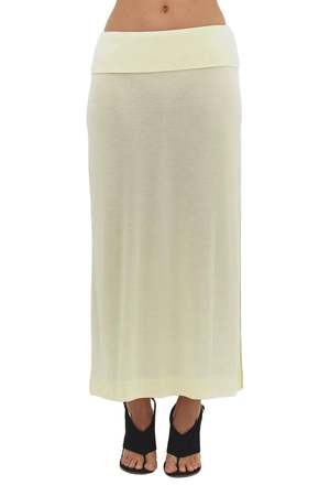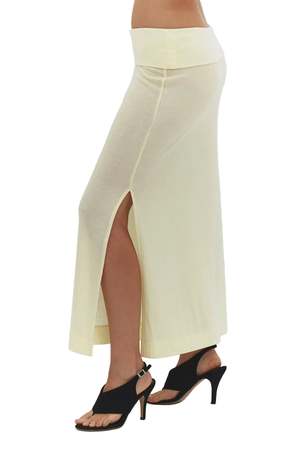 The Sori Skirt is a maxi-length skirt with a foldover waist and side slit detail. - Fitted, stretchy - Merino Wool Feathered Jersey