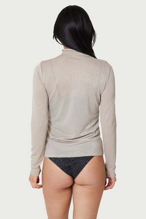 Shimmery mock neck crafted from a luxe blend of buttery soft, stretchy deadstock fabric. - Fitted - Knit fabric - Polyamide, Silver Thread