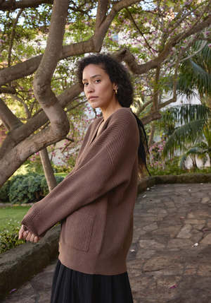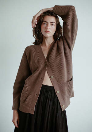 Our favorite cardigan is back for another season. The Maia Cardigan is an easy, everyday layer for year round. Designed with an oversized fit and roomy sleeve that tapers into a beautiful stitch detail at the hem. 100% Organic Cotton Oversized fit. Model is 5'10" and wears a size small. Measurements taken flat: X Small: Shoulder to hem length 26" / Across underarm 22" / Across hem 20" / Across shoulders 22" / Neckline to sleeve hem 27" Small: Shoulder to hem length 26.5" / Across underarm 22.5" / Across hem 20.5" / Across shoulders 23" / Neckline to sleeve hem 27.5" Medium: Shoulder to hem length 27" / Across underarm 23" / Across hem 21" / Across shoulders 24" / Neckline to sleeve hem 28" Large: Shoulder to hem length 27.5" / Across underarm 23.5" / Across hem 21.5" / Across shoulders 24.5" / Neckline to sleeve hem 28"