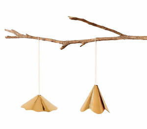 Add a playful charm to your tree or fireplace mantel with Petunia Ornaments. These shiny gold ornaments are just the right charm for your decorations this season. Made with solid brass. Sold as a set of 2.