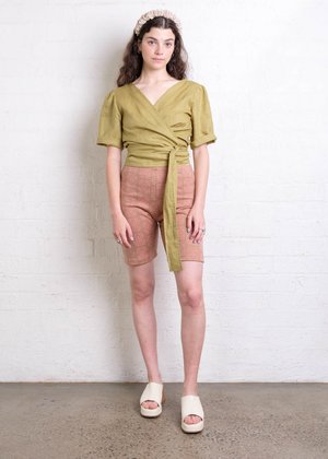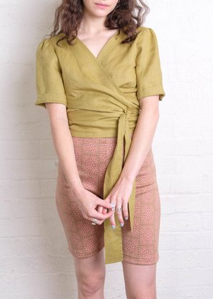 Our favourite classic wrap top in our soft vintage linen! This style if reversible and can be worn with a high-neck or deeper v at the front. it features extended ties that wrap over the front or back with a gathered shoulder detail. - 100% Vintage Washed Linen - Washing: Cold, gentle machine wash - Colours: Celery, Stripe, Slate - Fit: true to size, however the wrap style allows for flexibility around the waist Made in Melbourne with