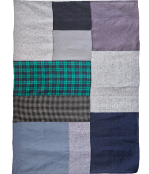 This generously sized cloth is sewn up in varying linen patterns. The patchwork design of each cloth will be unique. While it clearly suits a table, it can be used for anything you desire-upholstery drape, quick curtain or beach blanket. Size: 57" x 79" 100% Linen