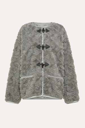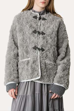 This faux-fur jacket with toggle fastenings is elevated with intricate geometrical embroidery shot with glistening strands. Soft and lined, it features a faux pocket for a casual feel and is trimmed with a shiny band in a contrasting color. Composition: 100% Polyester.