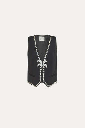 Viscose Wool Slub Pearl Embroidered Vest Composition: 76% Viscose, 18% Cotton Color: Abisso Size: True to Size