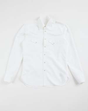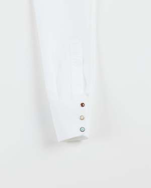 This White Oxford Western Garment is Fortela's Best Selling Shirt. The pocket shapes are an exclusive Fortela-only design. - The fabric has a weathered look, created by means of a special dyeing technique. - Red, Turquoise and beige left wrist press studs - Chest Pockets - Snap Buttons - Regular Fit - Oxford Fabric - 100% Cotton - Made in Italy Brand Fortela