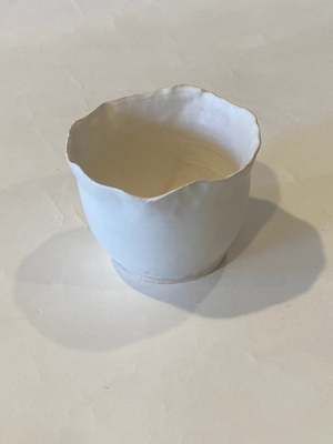 Handmade, white ceramic bowl Distressed edges Approx " high x " wide Made from artisans in: Brooklyn, NY