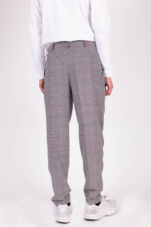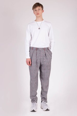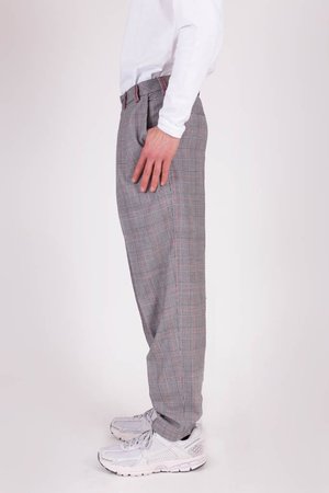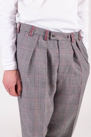 The Contrast Pant is a new offering for us this S/S19, designed to fit cohesively in any wardrobe. This double pleated pant is cut in a straight tapered fit and features a straight leg throughout with a tapered ankle. This garment features a zipper fly with two-button closure, two exaggerated pleats on front and is constructed from a midweight plaid woven fabric. Additionally it has two side pockets, two rear pockets, contrast stitching and interior polkadot lining. Made in Victoria.