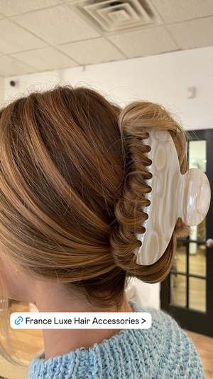 Elevate your everyday hair styling with the France Luxe Jumbo Couture Jaw, a timeless and sophisticated accessory designed for effortless elegance. Handcrafted in France from high-quality cellulose acetate, this luxurious jaw clip is polished to perfection, offering a glossy, refined finish that enhances its classic appeal. Ideal for those with thicker or longer hair, the strong yet comfortable spring clasp ensures a secure, all-day hold without damaging or pulling your strands. Whether you're sweeping your hair into a polished French twist, securing a chic half-up style, or creating a quick, effortless updo, this versatile clip provides a stylish and practical solution for any occasion. With its sleek silhouette and exquisite craftsmanship, the Jumbo Couture Jaw seamlessly blends function and fashion, making it a must-have addition to your accessory collectsion. Perfect for daily wear or special events, this statement piece embodies the art of French hair accessorieswhere beauty meets durability in every detail. Product Features: - Handmade in France - Great for styling thicker hair - Quick and easy styling solution - Made of luxurious cellulose acetate - Dimensions: 2 1/4" wide, 5" long