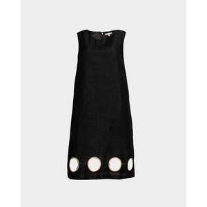 The Lilly Cut Out Mini Dress features an effortlessly chic shift fit with circular cutouts along the bottom hem for a distinctive finish. - Sleeveless short dress - Circular cutouts along the bottom hem - 2 side pockets - Back zipper closure - Shell: 100% Viscose - Lining: 100% Polyester - Made in India
