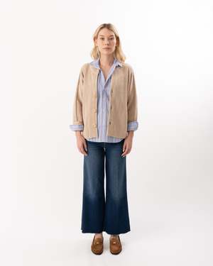 Eileens relaxed fit looks phenomenal on every figure. She exudes casual California effortlessness and is generously cut, with signature bust-flattering button placement. Try tucking, tying, or tossing this easy-to-pull-off best seller over everything in your closet. - Shirttail hem long enough to cover your bum - Shaped like a circle with soft rounded shoulders and no back pleat - Chest pocket - Signature bust-flattering button placement and long sleeves with button cuffs Fabric: 71% Cotton, 29% Linen. Woven in Italy. Made in Mexico. Care: Turn this garment inside out, machine wash on cold with like colors, and tumble dry on low.