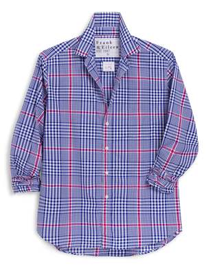 The Eileen Shirt by Frank & Eileen embodies effortless California cool with a relaxed, flattering silhouette designed for everyday wear. Soft, rounded shoulders and a signature bust-enhancing button placement create a figure-friendly fit, while the hand-distressed shirttail hem provides comfortable coverage. Finished with classic details like a chest pocket and button cuffs, this timeless button-up balances laid-back ease with polished stylean essential wardrobe staple for season-after-season wear. Details: Fit: Relaxed - Soft, rounded shoulders - Bust-enhancing button placement - Hand-distressed shirttail hem - Chest pocket - Button cuffs Fabric: 100% cotton Color: Pink Blue Plaid Type: Shirt