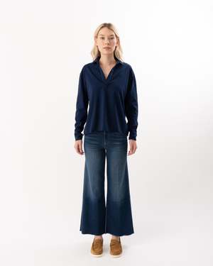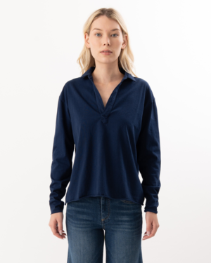 The Patrick Popover Henley by Frank & Eileen features a slight drop sleeve, sporty v-neck, and a straight raw-cut hem that looks cropped without sacrificing any length or coverage. This piece transitions effortlessly from running laps to lunch, or from beach walks to brunch. - Slightly cropped hand-cut raw hem and edges - Collared V neckline - Long sleeves - Made using a small batch garment-dye process, giving each piece a unique look that will evolve and fade over time This durable, open-end yarn is lightweight, breathable, and feels like your favorite vintage tee. 100% Cotton, made in the U.S. from seed to finish. Cotton is grown in the Delta region, spun into yarn in North Carolina, then knitted and crafted into garments in LA. We recommend washing separately in cold water before the first wear to prevent any color transfer. After that, machine wash cold with like colors and tumble dry low.