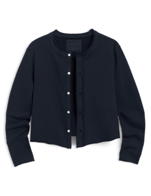 This sophisticated style has all the hallmarks of a forever classic cardigan with a few F&E twists. The perfect mix of feminine and functional, Jackie features a petite, square-ish silhouette, delicate buttons, and a signature raw edge hem in soft, cozy Triple Terry. - Triple Fleece: 100% Cotton - Hand-cut raw hem and edges - Front button closure - Long easy-to-scrunch sleeves - Slightly cropped fit - Model is 5'9" with a 32" bust wearing a size S - Type: Top