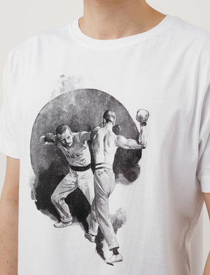 The boxing tee, with an archive illustration print emblazoned at the chest. The tee is made from 100% midweight soft cotton. Regular fit in tact and minimal stitched neckline. - Made in Germany - Made from 100% cotton - Regular fit - Machine wash - Model is 5'11", 155 lbs. and wears size medium - Product Measurements SIZE Pit to Pit Shoulders Shoulder to Cuff Back Length S 19" 17" 7.5" 25.5" M - - - - L 21.5" 18.5" 8" 27.75"