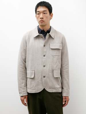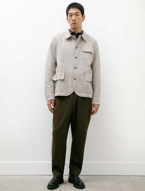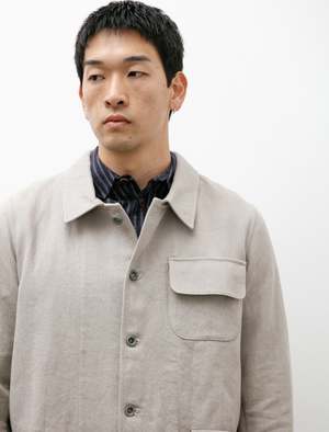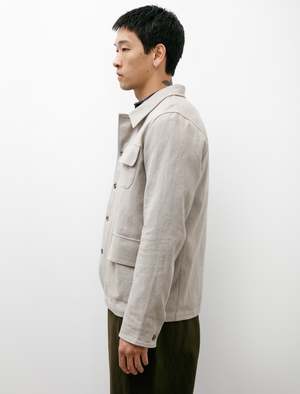 A relaxed fitting, tailored button-front shirt cut from a lightweight, striped, cotton/linen shirting in a white on blue. Features a classic collar, a pointed strap style placket with cutaway profile at the hem, a clean finished rear yoke with half inch pleats at the shoulders, and a curved hem with side reinforcement gussets. High armholes and precisely tailored sleeves combine for a tidy, composed look while offering excellent wearing ease and avoiding restriction. Constructed using flat felled seams throughout for a long lasting, hard wearing finish that leaves an exceptionally tidy interior; caramel coloured corozo buttons throughout.