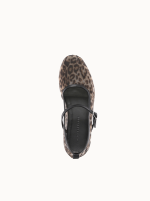 Classic Mary Jane flats with an adjustable buckle for comfort. Unlined with a padded leather footbed and non-stretch mesh upper. Type: Flats. Color: Leopard Mesh.