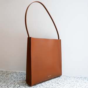 Square-shaped shoulder leather bag with magnetic-fastening tab at open top. Features one inside pocket and color coated interior leather. Dust bag included. Height: 30 cm. Width: 28 cm. Depth: 7 cm. Handle length: 60 cm. Handmade in Italy. 100% Italian leather.