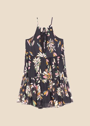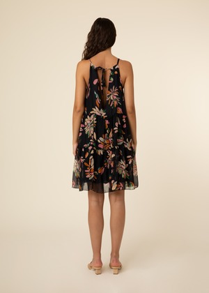 DETAILS A light and airy silk-blend mini-dress, Mona invites you to move and flow. Adorned with the exclusive FRNCH Arianna print, this short dress will move elegantly with your every step. The back opening gives it an extra feminine touch. Wear it casually during the day with sneakers, or in the evening with sandals for an elegant look. COMPOSITION Dress: 70% Viscose 30% Silk, Lining: 100% Viscose Made in Italy