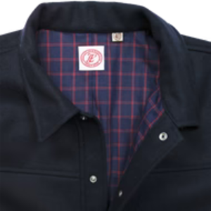 A short-length jacket with beautiful western details. Pink pearl buttons are a feature of this jacket, evoking the Hollywood style of the 1950s. The navy wool melton material gives off an elegant air, and the indigo broad check lining makes it smooth and comfortable to wear. Wool 80% / Nylon 20%. Lining: Cotton 100%. For the best fit, we recommend measuring a similar jean, jacket, or shirt you own. SIZE BODY SHOULDER LENGTH SLEEVE 38 45.7 19.5 24 23.8 40 47.2 20.3 24.8 24.4 42 48.8 21.1 25.6 25