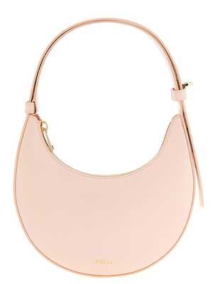 Women > Bags > Shoulder Bags The Furla Delizia mini leather shoulder bag features a silky, smooth touch and a rigid crescent structure. It includes a front embossed logo2, top zip closure, and an adjustable handle with a metal swivel mechanism. Composition: 100% calfskin leather (Bos taurus).