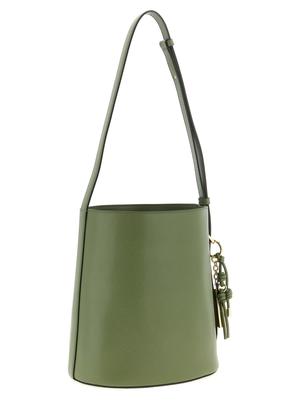 Women > Bags > Shoulder Bags Small Roxie bucket bag in grain-effect calfskin leather with front metal logo2 lettering, internal magnetic closure, flexible bottom, adjustable shoulder strap, and removable charm. Composition: 100% calfskin leather (Bos taurus).