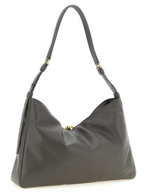 Women > Bags > Shoulder Bags Furla Sfera Soft large shoulder bag in padded smooth nappa leather with magnet button closure decorated with ball hardware, front embossed logo2, adjustable handle, and rigid base with metal feet. Composition: 100% calfskin leather (Bos taurus).