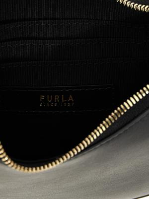 Women > Bags > Shoulder Bags "Furla Delizia" mini leather shoulder bag with a silky, smooth touch, rigid crescent structure, front embossed logo2, top zip closure, and adjustable handle with metal swivel mechanism. Composition: 100% calf leather (Bos taurus).
