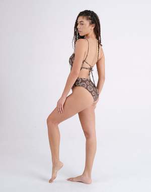 The Joni One Piece features a classic, streamlined silhouette. Adjustable ruched detailing at the underarms allows for the perfect fit with extra room at the bust. A squared modern neckline is complemented by a wide, open back with versatile straps that can be tied multiple ways depending on your preference. - Model measurements: 5'9" / 34D / 25 /35 - Eden wears a Small - Made in Los Angeles of Italian fabric. - 88% recycled Econyl / 22% Spandex - Learn more about swim care for a suit that lasts.