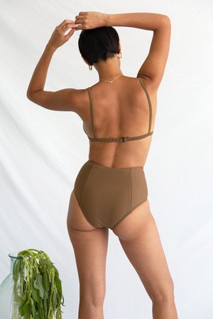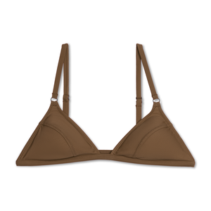 An updated take on a classic triangle shape with a contour apex seam and a delicate ring detail. Featuring removable pad inserts, adjustable shoulder straps and a rubberized g-hook closure with a 3-loop adjustment makes for an individualized fit. Shown here with the High Kick Brief. It also pairs beautifully with the Adjust Brief and the High Bottom. - Braina wears a size Small - Made in Los Angeles of Italian fabric. - 88% recycled Econyl / 22% Spandex - Learn more about swim care for a suit that lasts.