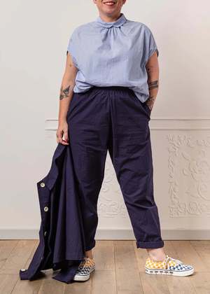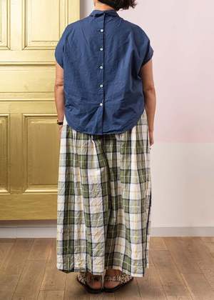 This sleeveless shirt from Gallego Desportes is crafted from soft cotton and features a discreet collar, small gathers at the base of the neck, modest armhole openings, and small mother-of-pearl buttons at the back that cascade down to the hips. Fits true to size. 100% cotton. Made in France.