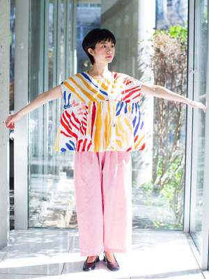 Size Small: Shoulder: 50 cm; chest: 60 cm; length: 53 cm; sleeve: 20 cm Size Medium: Shoulder: 52 cm; chest: 62 cm; length: 54 cm; sleeve: 21 cm - 100% cotton, wash 30 C - Made in France. - Model is 160 cm (5'2) and wears size Small. About Gallego Desportes: Virginie Gallgo and Fabien Desportes met while studying fashion design in Paris. From 1993, they worked together and created their first collectsion by mixing "Made in France" fabrics and old textiles. The principle of their style is comfort and elegance.