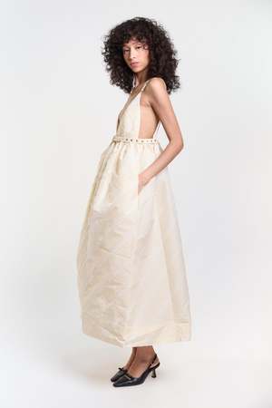 Material: 100% Recycled Polyester Sleeve Length: Sleeveless Neckline: V-Neck Length: Long Mpn: W0173 Season: 2024 Holiday Vendor Color: Egret Color Group: Beige Designed in Denmark.