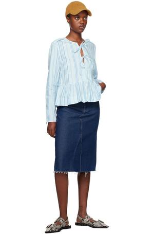 Organic cotton twill blouse. Stripes throughout. - Round neck - Self-tie closure - Gathering at peplum hem - Epaulettes - Vented cuffs Supplier color: Heather