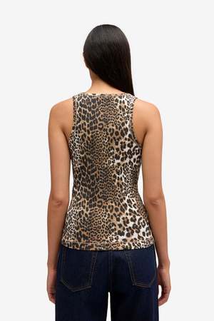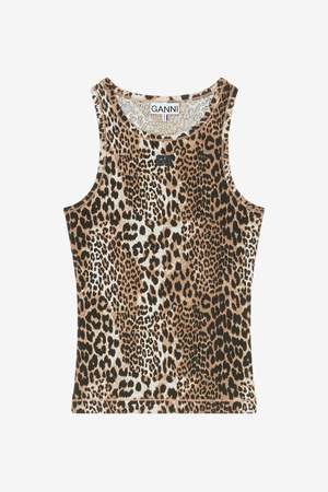 The Soft Cotton Rib Tank Top from Ganni arrives in a leopard pattern, made from ribbed organic cotton with added stretch. It features a round neckline and Ganni logo2, and is designed for a slim fit. Made from 95% organic cotton, 5% elastane. Style code: A1050073.
