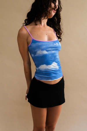 Geel black Aria micro mini skirt featuring built-in shorts and hidden elastic waistband. Made with our luxurious plush washed modal fabric. 65% polyester, 25% modal, 10% spandex. Model is wearing a size small. This is a micro mini, so if inbetween sizes we suggest sizing up.