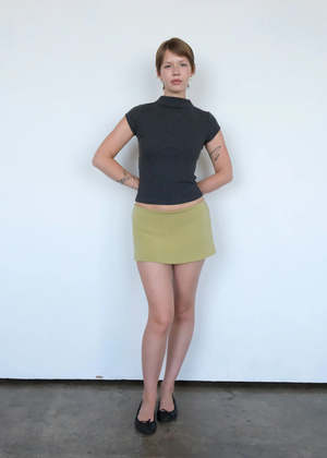 The Aria is a micro mini skirt featuring built-in shorts and a hidden elastic waistband. Made with our luxurious plush washed modal fabric. Model is wearing a size small. Type: Skirt.