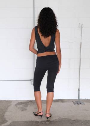 A draped sleeveless top, with an open back and a self tie belt. Contents: 70% brushed modal, 30% polyester Made in Los Angeles
