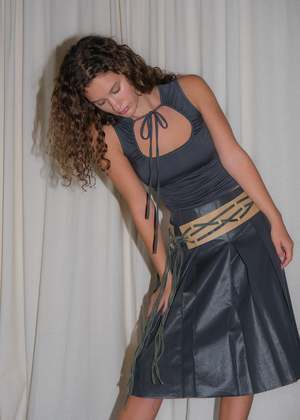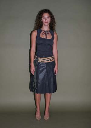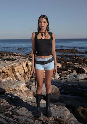 The Betty, an adjustable ruched tie sleeveless top. Contents: 96% modal, 4% spandex Made in Los Angeles