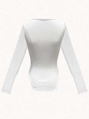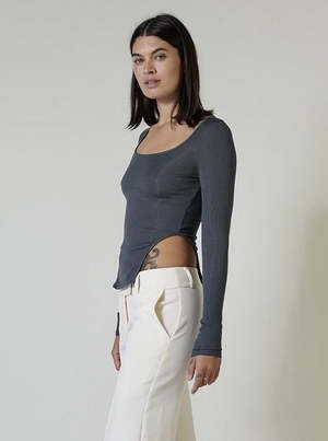 The Lorenzo, the top inspired by our body suit shape. Features a scoop neck, long sleeves and a fitted bodice seam details. Fits true to size. Fabric: micro modal ribbed jersey (96% modal, 4% spandex) This piece is manufactured locally in Los Angeles from start to finish. Our custom ribbed modal fabric is FSC certified and milled here in LA.