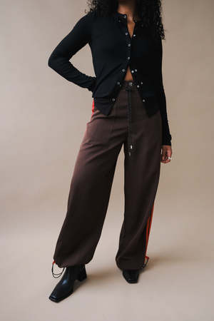 Geel double snap cardigan in black. The Snap Cardigana double layered cardigan featuring two functional snap button closure. Outer layer: 94% rayon, 6% spandex. Inner layer: 53% acrylic, 36.5% tencel, 5.5% silk, 5% spandex PIPE AND ROW